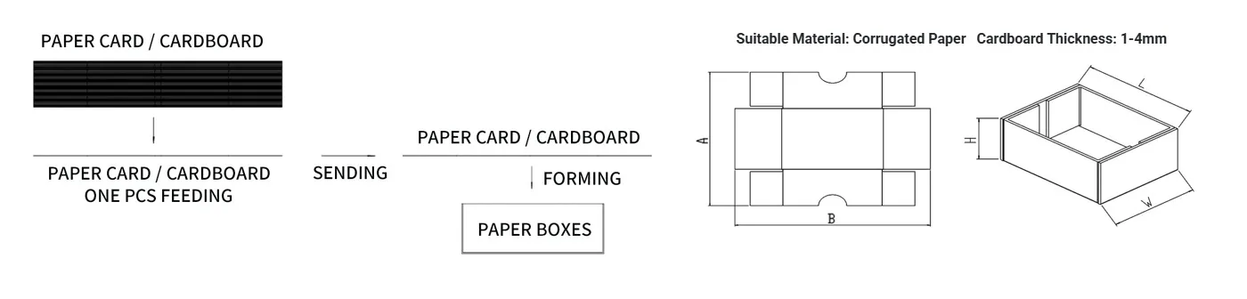 Place the prepared cardboard in the carton machine's paper feed slot. The machine will detect the cardboard, position it, and spray adhesive. This step is vital as it ensures the cardboard is firmly bonded. The machine will then fold the cardboard into the desired shape. The formed paper box is then pressed to ensure a firm bond and enhance stability. Finally, the machine will eject the finished paper boxes, ready for packaging or filling.
