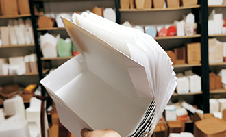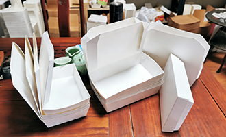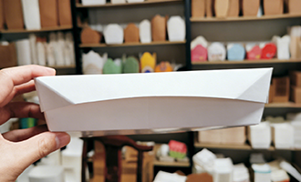 This paper box is hexagonal. Its unique shape stands out and is a creative packaging solution.