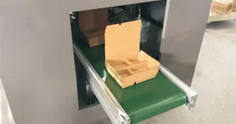 The FBN-DG is designed for producing 3-, 4-, 5-, and multi-compartment paper lunch boxes, compatible with PE-coated paper and a production speed of 20-30 boxes/minute. Its compact structure and simple operation meet the batch production needs of eco-friendly lunch boxes in the food service industry.